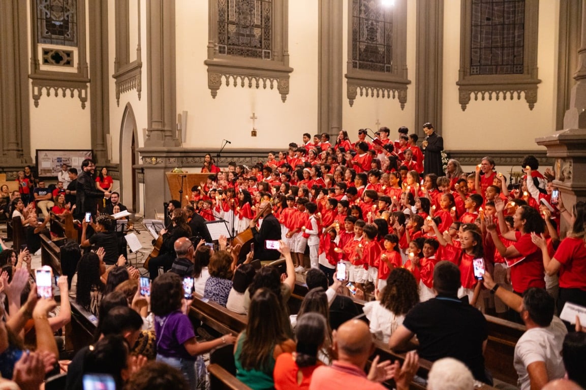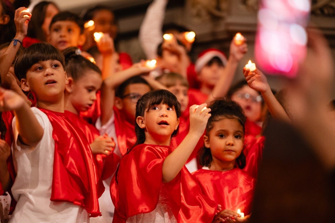 A Catedral Metropolitana de Vitória recebeu, nesta terça-feira (25) um espetáculo de luzes e vozes, com a Cantata de Natal do Colégio Salesiano Nossa Senhora da Vitória. O evento marca o encerramento letivo das turmas do Ensino Fundamental Anos Iniciais, celebrando o Natal e reforçando os valores propostos pela educação salesiana junto às famílias e à sociedade capixaba.