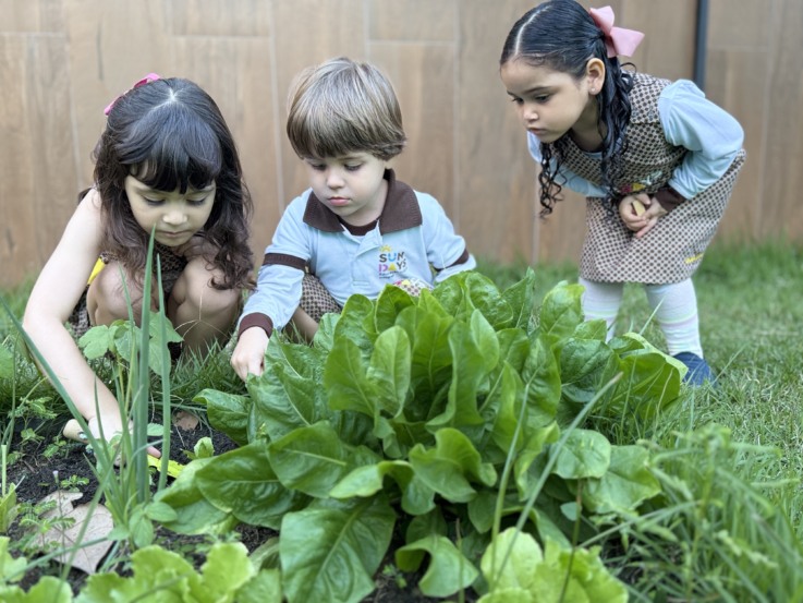 - Horta e culinária, que aproximam as crianças da alimentação saudável e da sustentabilidade;