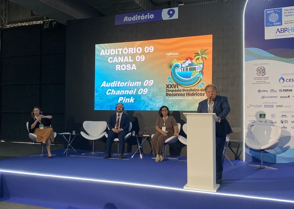 Monitoramento do rio Doce e das áreas Costeiras – A segunda mesa temática, que contou com a mediação da gerente de Reparação e Recuperação Ambiental da Serd, Juliana Valory, teve como tema “Monitoramento do rio Doce e das áreas Costeiras e Marinhas Adjacentes – 10 anos do rompimento”. Os palestrantes Maurrem Ramon Vieira, coordenador da Rede Nacional de Qualidade de Água; Juliano Barbirado, agente de Desenvolvimento Ambiental e atuante na Coordenação Técnica de Enfrentamento a Crise Ambiental do Rio Doce, e Jaqueline Francischetti, consultora técnica da Organização Pan-Americana da Saúde (OPAS) e representante do Programa Especial de Saúde do Rio Doce, falaram sobre os trabalhos de monitoramento da água, dos sedimentos e as implicações na saúde dos moradores das comunidades atingidas. ( Simpósio ABRHidro 04 )