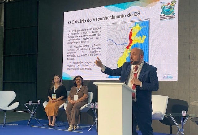 Entre as mesas temáticas do Simpósio Brasileiro – as equipes da Secretaria de Recuperação do Rio Doce (Serd) puderam apresentar as ações, projetos e obras que estão sendo realizadas pelo Governo do Estado nas cidades impactadas pelo desastre ambiental de Mariana. Com o tema “A Repactuação e o novo acordo do Rio Doce – Caminho da Reparação”, o secretário de Estado de Recuperação do Rio Doce, Guerino Balestrassi; a subsecretária de Ações Socioeconômicas e Participação Social, Margareth Saraiva; e o defensor público Rafael Mello Portella Campos, coordenador do Núcleo de Atuação em Desastres e Grandes Empreendimentos (NUDEGE), relembraram todo o caminho para a assinatura do Novo Acordo do Rio Doce e os desafios para a reparação integral das cidades e dos atingidos. A mediação do debate, realizada na quarta-feira (26), foi conduzida pela gerente de Ações Socioeconômicas, Elis Braga Licks.