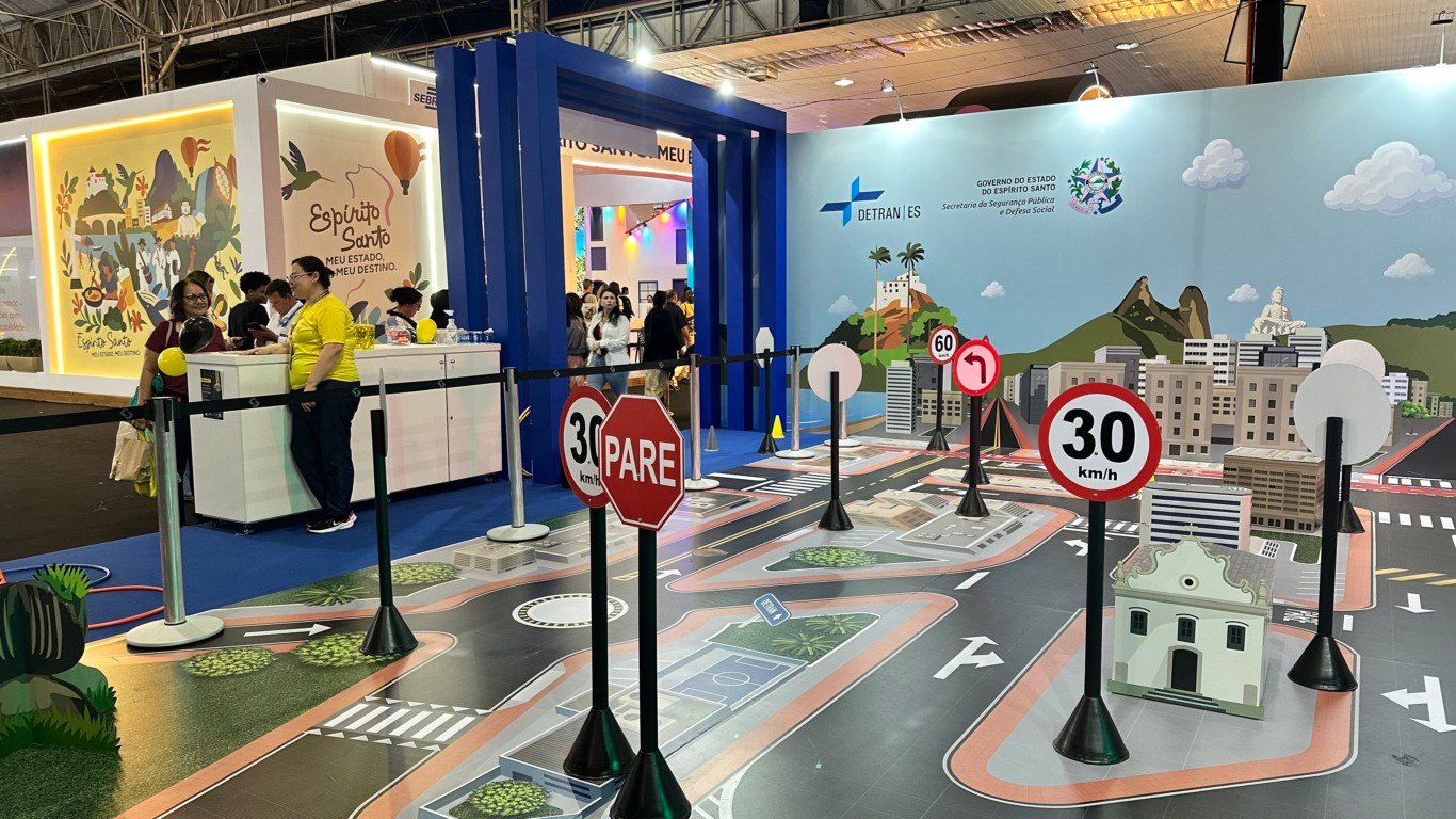 Detran|ES leva Mini Cidade do Trânsito e Agência Itinerante para a Autotech 2025 – O Departamento Estadual de Trânsito do Espírito Santo (Detran|ES) está presente em mais uma edição da Autotech – Feira de Tecnologia Automotiva 2025, que acontece entre hoje, dia 24 e termina no domingo, dia 26, na Praça do Papa, em Vitória. Para a Feira de Tecnologia Automotiva, o Detran levará uma série de atividades e serviços para a população. Um dos destaques é a Mini Cidade do Trânsito, que tem como o objetivo mostrar de forma lúdica o funcionamento do trânsito e testar a perícia dos participantes. A Mini Cidade tem ciclovias, sinalização horizontal, vertical e semafórica, incluindo faixas para pedestres, faixas de aproximação, lombadas (quebra-molas), setas indicativas, linhas tracejadas, duplas amarelas, áreas de retenção, sinais de pare, entre outros elementos de uma via.