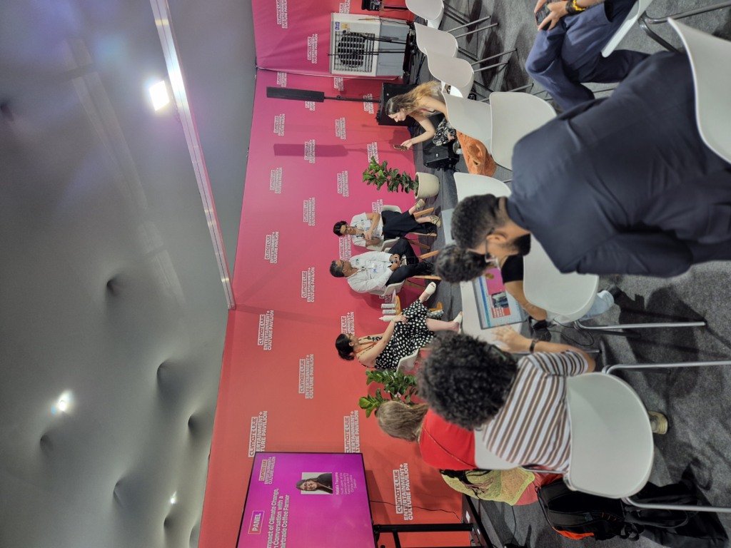 A importância do fortalecimento das juventudes rurais dentro dos sistemas alimentares sustentáveis – A ativista da justiça climática Natalia Tsuyma ressaltou a importância do fortalecimento das juventudes rurais dentro dos sistemas alimentares sustentáveis. Seu depoimento emocionou o público ao conectar sua própria trajetória com a luta das famílias agricultoras. “Para mim foi incrível participar desse bate-papo. Eu amei ouvir o Renato e saber mais do trabalho incrível que a Fairtrade e a CLAC estão fazendo no Brasil. Enquanto muitos jovens saem do campo e vão para a cidade, fico muito feliz de ver que existem pessoas lutando para que a juventude plural tenha vez e continue no seu território”, afirmou. Já para Catalina Jaramillo, diretora regional Cone Sul da CLAC, a sessão representou um recorte potente do que a rede de produtores constrói diariamente: conhecimento coletivo, fortalecimento das cooperativas e ação climática enraizada na vida real. “Foi maravilhoso. Nunca vi em um só momento falar de tantas coisas. Passamos pelo cooperativismo, pela renda digna, pelos projetos… foi fantástico. Os jovens se envolvendo nas cooperativas foi muito bom, adorei o bate-papo”, finalizou.