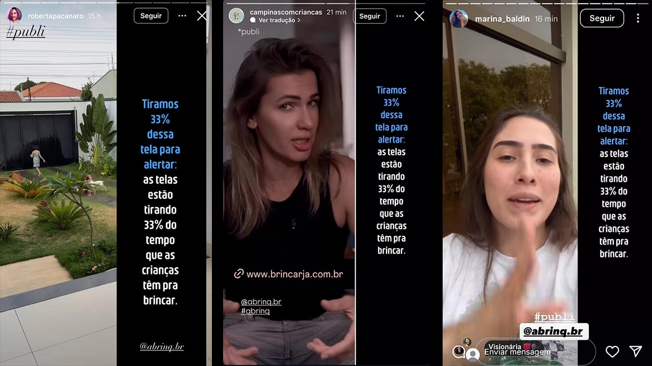 Campanha criada pela DPZ oculta 33% da tela de stories de creators – Para ajudar os pais nesta missão, a ABRINQ ainda desenvolveu a plataforma “Brincar Já”, que sugere, a partir dos brinquedos que os pequenos já têm em casa, maneiras divertidas de se divertir. O responsável insere quanto tempo seu filho passa no celular, sua idade e interesses pessoais. Ao final, recebe, de maneira instantânea, sugestões inéditas e personalizadas de atividades recreativas, levando em conta o perfil da criança e aquilo que ela já tem por perto. “O excesso de eletrônicos colocou a infância em sinal de alerta. Se cobramos dos pais menos telas, também precisamos oferecer caminhos para preencher esse tempo com alternativas de qualidade. Nesse contexto, a plataforma ‘Brincar Já’ resgata a importância insubstituível da diversão, sempre de maneiras criativa, estimulando a imaginação e o aprendizado”, conta Synésio Batista, presidente da ABRINQ.