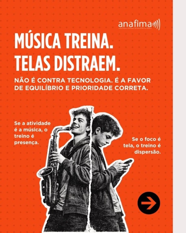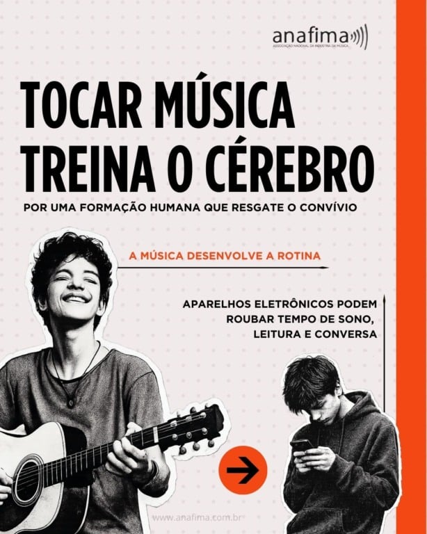 A ANAFIMA faz um chamado às famílias e educadores em defesa do desenvolvimento integral de crianças e adolescentes – “Não somos contra a tecnologia. A proposta da campanha é defender o equilíbrio e a prioridade correta no desenvolvimento das crianças. Um instrumento musical não compete apenas com um dispositivo eletrônico: ele amplia repertório, fortalece vínculos e promove autonomia”, afirma Daniel Neves, presidente da ANAFIMA. Estudos científicos recentes indicam que intervenções e treinamentos musicais podem melhorar funções executivas em crianças, como memória de trabalho, controle inibitório e flexibilidade cognitiva, além de favorecer habilidades de linguagem e aprendizagem quando há orientação adequada e prática consistente. Em contrapartida, a exposição precoce e excessiva a telas — especialmente celulares e tablets — tem sido associada a prejuízos no sono, na atenção e no desenvolvimento cognitivo e psicossocial, sobretudo quando substitui atividades estruturantes como brincadeiras, leitura, convivência e descanso adequado.