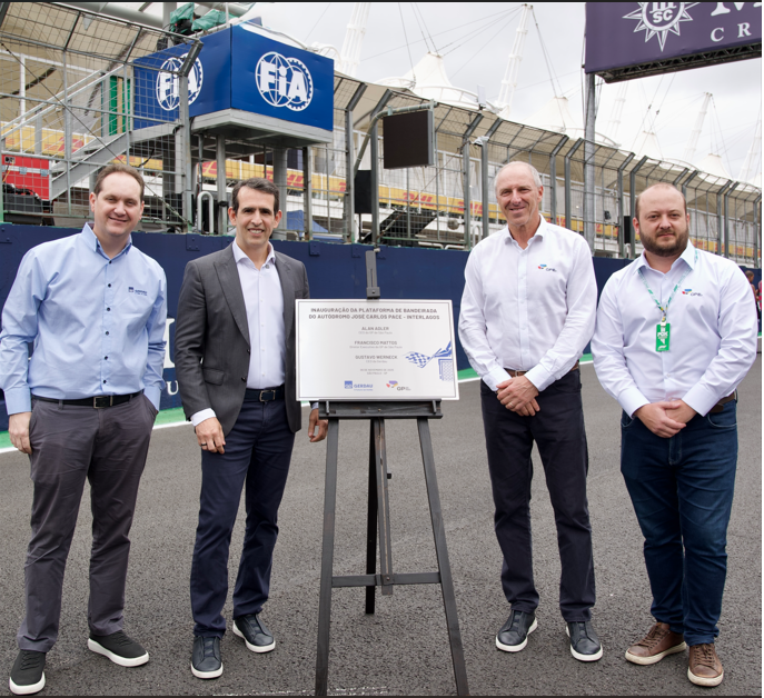 Gerdau e Grande Prêmio de São Paulo inauguram novas estruturas em aço 100% reciclável no Autódromo de Interlagos – A Gerdau, maior empresa brasileira produtora de aço e uma das líderes globais na produção de aços especiais para o mercado automotivo, e o Grande Prêmio de São Paulo de F1, etapa brasileira da maior e mais popular competição automobilística mundial, inauguraram na quinta-feira as novas estruturas feitas com aço Gerdau 100% reciclável no Autódromo de Interlagos, em São Paulo (SP). A cerimônia de inauguração das novas estruturas ocorreu no próprio Autódromo, com a presença de Gustavo Werneck, CEO da Gerdau, e de Alan Adler, CEO do Grande Prêmio de São Paulo. As novas instalações feitas em aço Gerdau 100% reciclável contemplam áreas estratégicas do circuito, incluindo renovação da nova plataforma de bandeirada, instalada na linha de chegada da corrida, de novos suportes para os repetidores do sinal de largada e revitalização do pórtico do sinal de largada. Com essa ampliação do uso de elementos de aço no Autódromo, a Gerdau reafirma seu compromisso com a sustentabilidade e a inovação, contribuindo para a modernização do circuito que sedia a etapa brasileira da maior competição automobilística do mundo nos dias 7, 8 e 9 de novembro. Na foto, Pedro Torres, da Gerdau, Gustavo Werneck, CEO da Gerdau, Alan Adler, CEO do GP SP F1, e Francisco Mattos, GP SP F1.
