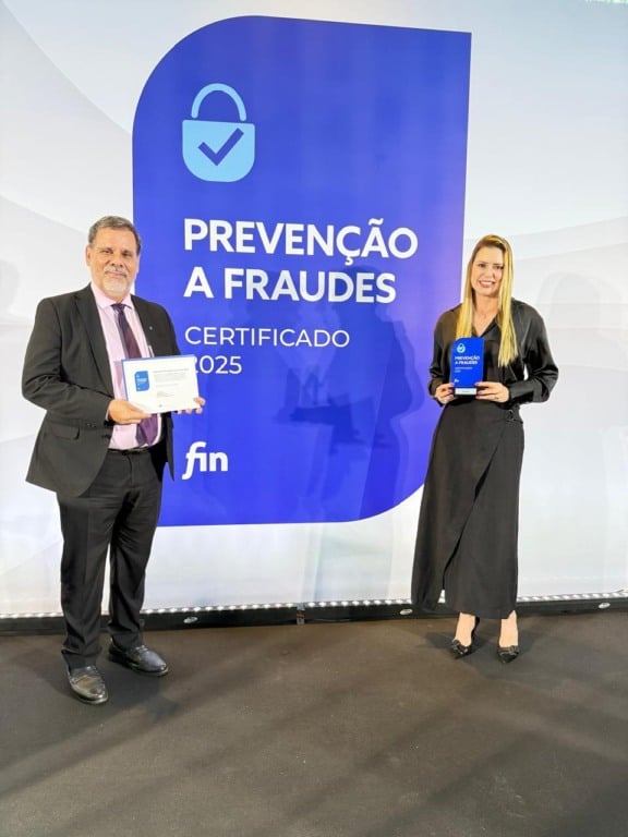 Na terça-feira, dia 18 de novembro, o Banco do Estado do Espírito Santo (Banestes) participou da cerimônia de premiação que concedeu à instituição o Selo FIN de Prevenção a Fraudes 2025. A iniciativa visa reconhecer e certificar as instituições financeiras que se destacam na adoção de medidas rigorosas para a prevenção, o combate e a conscientização sobre fraudes e golpes no setor bancário. A solenidade aconteceu em São Paulo (SP), no Auditório FL Corporate. O Selo é uma certificação lançada pela Confederação Nacional das Instituições Financeiras (CNF) em parceria com a Federação Brasileira de Bancos (Febraban). O evento celebrou o compromisso e a dedicação do Banestes na adoção de códigos, políticas e boas práticas voltadas à proteção contra fraudes no sistema financeiro. Na foto, Gerente de Segurança da Informação, Paulo Neiva e diretora de Riscos e Controle do Banestes, Joseane Zoghbi.