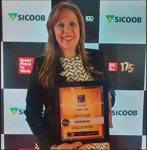 Sicoob ES estreia no ranking nacional GPTW entre as melhores empresas para trabalhar – Em uma crescente constante na valorização de pessoas e no fortalecimento da cultura organizacional junto aos seus funcionários, o sistema regional Sicoob ES conquistou espaço no ranking nacional do prêmio Great Place to Work (GPTW) Brasil 2025 pela primeira vez. A instituição, que já figurava entre as melhores do Espírito Santo, agora passa a integrar a lista das 175 empresas com os melhores ambientes de trabalho do País. A 29ª edição da premiação foi realizada em São Paulo e destacou organizações que se diferenciam pelo cuidado com o clima organizacional, a inovação e o bem-estar dos colaboradores. O levantamento considera a percepção dos funcionários e as práticas adotadas pela empresa, avaliando critérios como confiança, liderança, valorização do potencial humano e consistência cultural. “Estar no ranking nacional é uma conquista coletiva, que reflete o quanto as nossas cooperativas valorizam as pessoas e acreditam que o crescimento sustentável começa por elas. É um movimento que vem sendo construído com práticas que fortalecem a confiança e o pertencimento”, destaca a supervisora de Desenvolvimento Humano, Giovanna Barelli, que estava no evento e recebeu o troféu.