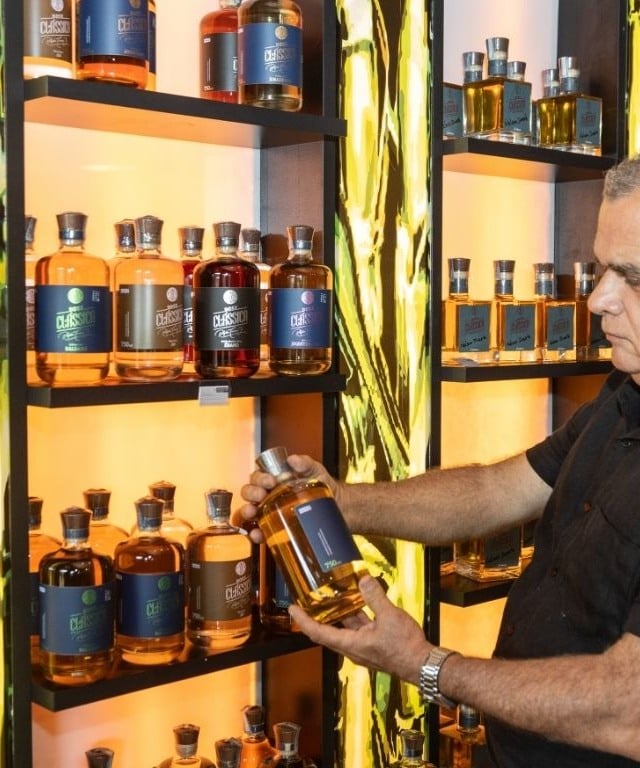 Algumas também exclusivas no Estado, como a Dose Clássica 3 Madeiras. Única capixaba com Gran Ouro na categoria, e, além disso, a ponto 50 única aguardente capixaba com medalha em concurso internacional.