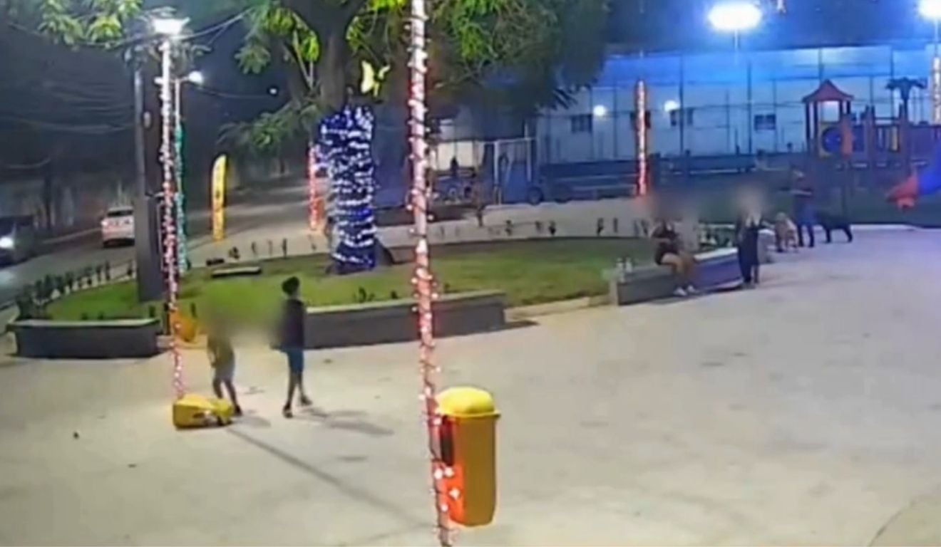 Câmeras de segurança flagraram, na noite de quinta-feira (27), uma cena preocupante na praça do bairro Paul, em Vila Velha: crianças e adolescentes vandalizando lixeiras e outros equipamentos públicos, na presença de seus próprios responsáveis.