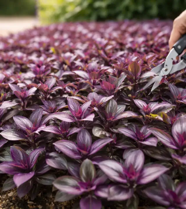 A poda regular do lambari-roxo não é apenas uma questão estética — ela interfere diretamente na saúde e no crescimento da planta. A primeira poda, geralmente feita ao fim do verão, remove caules esticados e cansados, forçando a planta a emitir novas brotações laterais. Essas brotações, por sua vez, garantem o preenchimento do solo com novas folhas, aumentando a densidade da cobertura.