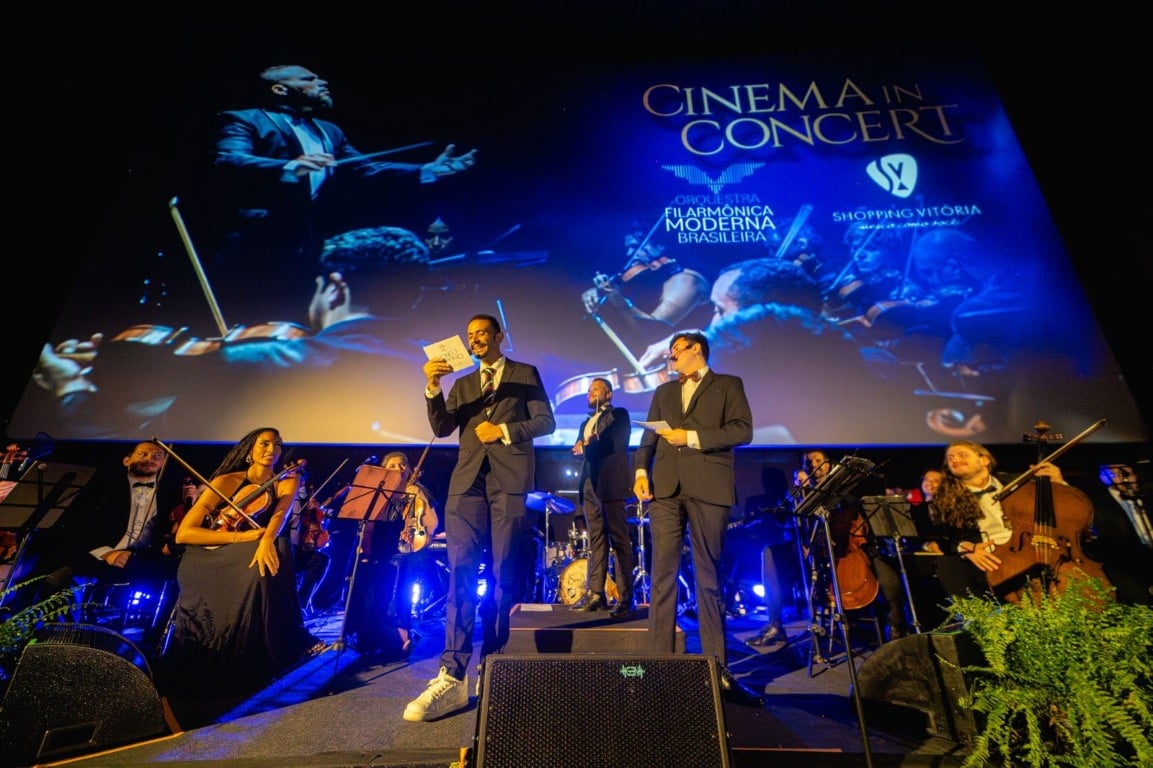 Trilhas que marcaram gerações ganharam vida e muitos aplausos em uma experiência única e inédita promovida pelo Shopping Vitória: o Cinema In Concert, apresentação que uniu o melhor do cinema à emoção da música clássica conduzida ao vivo pela Orquestra Filarmônica Moderna Brasileira. Uma imersão entre imagem, som e sentimento que envolveu o público em uma sinfonia que revisita grandes sucessos das telonas. Foi uma sessão exclusiva para convidados e aconteceu no sábado, 22 de novembro, às 10h, no Cinemark do Shopping Vitória. Na tela, trechos de filmes clássicos e contemporâneos foram exibidos enquanto a orquestra interpretou os temas que atravessaram décadas. Entre os destaques do repertório, O Senhor dos Anéis, Piratas do Caribe, Titanic, Gladiador, 007 – Skyfall, Pearl Harbor, Ghost, O Guarda-Costas, entre outros marcos do cinema mundial