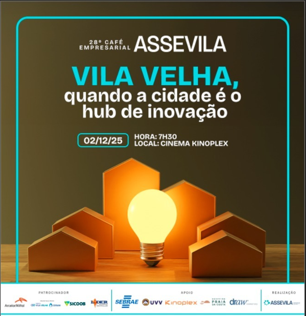 Inovação é tema do 28º Café Empresarial da ASSEVILA – A Associação dos Empresários de Vila Velha (ASSEVILA) realiza no dia 9 de dezembro, no Cinema Kinoplex, no Shopping Praia da Costa, às 7h30, a 28ª edição do Café Empresarial. No último encontro do ano, o evento reúne lideranças, empresários, gestores públicos e representantes das principais instituições do Espírito Santo. Nesta edição, o evento contará com a palestra de Leonardo Carraretto — jornalista, empreendedor e especialista em inovação com mais de 20 anos de atuação em comunicação e transformação digital. Léo Carraretto abordará como empresas de diferentes portes podem se adaptar às mudanças aceleradas do mercado, integrar inovação aos seus processos e construir modelos mais resilientes e competitivos.