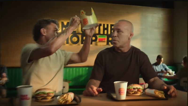 O filme reforça a ideia de que, enquanto tem gente que quer ver a “porrada comendo” – o BK® quer ver todo mundo amassando 2 burgers grandões, feitos no fogo e no precinho. O Burger King® tem em seu DNA a coragem de usar a criatividade para incluir assuntos da cultura popular ou mesmo temas importantes para a sociedade em sua comunicação. Segundo a marca, a rivalidade entre Popó e Wanderlei parou o Brasil, e nada seria mais autêntico do que promover o reencontro de um jeito descontraído, com muito sabor, para afastar o gosto amargo que ficou na trajetória de ambos. O Burger King® tem em seu DNA a coragem de usar a criatividade para incluir assuntos da cultura popular ou mesmo temas importantes para a sociedade em sua comunicação. Segundo a marca, a rivalidade entre Popó e Wanderlei parou o Brasil, e nada seria mais autêntico do que criar o palco para essa reconciliação, celebrando o reencontro com muito sabor.