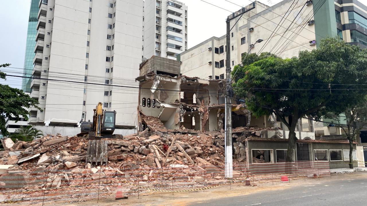 Escombros de um prédio em demolição atingiram um salão de beleza vizinho e provocaram estragos na tarde de segunda-feira (2), na Praia de Itaparica, em Vila Velha. Parte dos entulhos da obra caiu sobre o estabelecimento, destruiu o muro e invadiu a área interna do imóvel. Ninguém se feriu.
