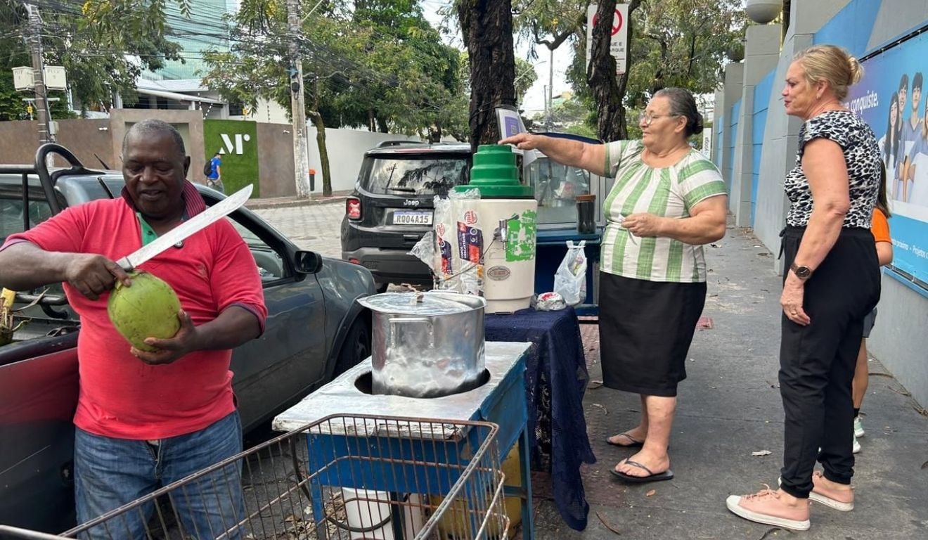 Esse é o caso de Geraldo Francisco Moreira – ou seu Geraldo -, de 68 anos, que vende pipoca, chup-chup e água de coco em frente à Escola Monteiro, na Enseada do Suá, em Vitória. Ele conta que no dia a dia consegue vender uma quantidade razoável de produtos, porém quando chegam as férias são dois meses com a renda bem mais baixa.