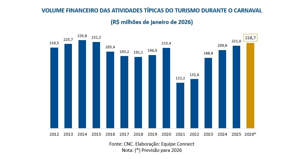 Carnaval no Espírito Santo deve movimentar R$ 228,7 milhões com comércio, serviços e turismo – O fluxo intenso de foliões e turistas em fevereiro deve vir acompanhado de um impacto expressivo na economia capixaba. Neste ano, o Carnaval no Espírito Santo tem potencial para movimentar R$ 228,7 milhões, sendo um dos períodos mais relevantes para os setores de comércio, serviços e turismo no estado. A projeção representa um crescimento de 3,5% em relação a 2025, quando a movimentação foi estimada em R$ 221 milhões, e aponta para um desempenho acima da média dos últimos 10 anos, que girou em torno de 2% ao ano. As análises são do Connect Fecomércio-ES (Federação do Comércio de Bens, Serviços e Turismo do Espírito Santo), com base nos dados da Confederação Nacional do Comércio de Bens, Serviços e Turismo (CNC). No cenário nacional, a CNC estima que o Carnaval gere R$ 14,48 bilhões em receitas, crescimento real de 3,8% em relação ao ano anterior, já descontada a inflação.