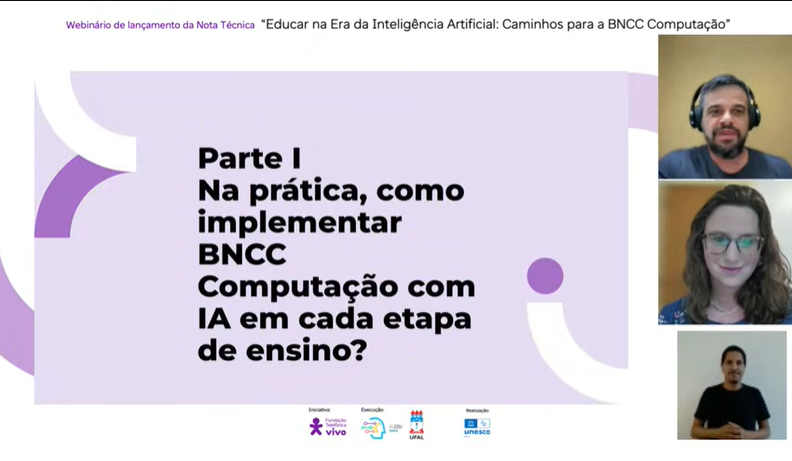 A IA e outras tecnologias habilitadoras não devem ser vistas como meras ferramentas – A IA, nesse cenário, não se configura como conteúdo isolado, mas como campo de conhecimento que se articula aos pilares da Computação, ampliando as oportunidades de aprendizagem e promovendo uma formação crítica, ética e criativa dos estudantes. “Vivemos um momento singular para repensar a educação e o papel da tecnologia, em particular, a inteligência artificial na melhoria e expansão de uma educação de qualidade. A IA e outras tecnologias habilitadoras não devem ser vistas como meras ferramentas. Elas devem ser pensadas e construídas como parte inerente do sistema educacional para fortalecer interações e aprendizagens humanas de forma criativa, crítica e sustentável. Com a abordagem de IA desplugada na educação, queremos mostrar que é possível levar os benefícios da IA mesmo em contextos de baixa conectividade e infraestrutura, garantindo que nenhum estudante, professor, escola ou região fique para trás”, comenta Seiji Isotani, um dos coordenadores da Cátedra UNESCO UNITWIN de Inteligência Artificial Desplugada na Educação e Diretor do Programa de IA na Educação da Universidade da Pensilvânia. Como primeiro fruto da colaboração, as instituições lançaram a Nota Técnica “Educar na Era da Inteligência Artificial: Caminhos para a BNCC Computação” – idealizada pela Fundação Telefônica Vivo, executada pelo Instituto de Inteligência Artificial para a Educação (IA.Edu), e realizada no âmbito da Cátedra UNESCO UNITWIN de Inteligência Artificial Desplugada na Educação.