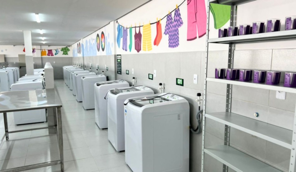 O espaço será compartilhado para lavagem de roupas gratuitamente. Segundo o governo, a iniciativa visa transformar o cuidado em política de Estado.