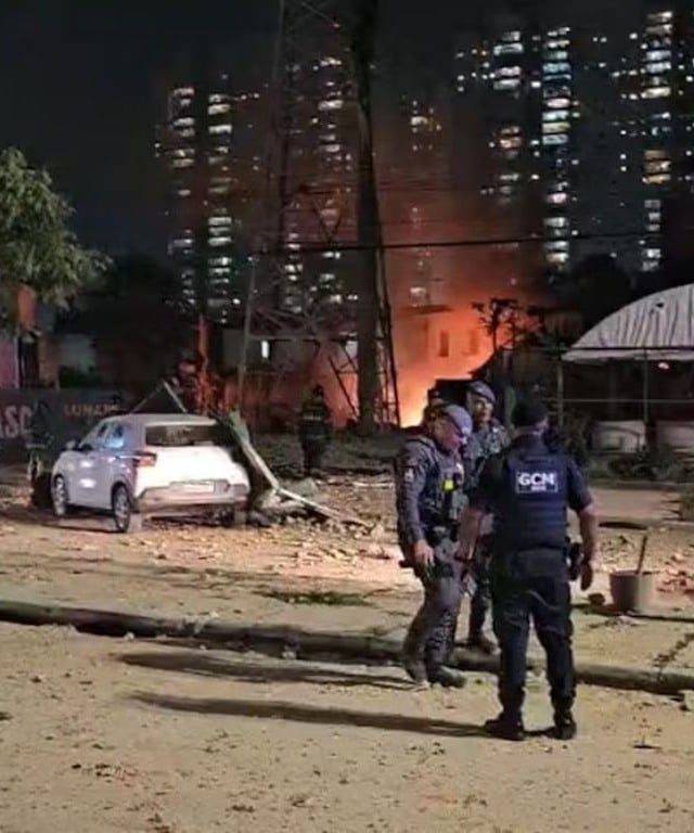Imagens que circulam nas redes sociais mostram uma área pegando fogo e uma grande coluna de fumaça, nos arredores de prédios. Um vídeo feito por câmeras de monitoramento captaram o momento da forte explosão com rajadas de fogos de artifícios cruzando a Avenida Salim Farah Maluf.