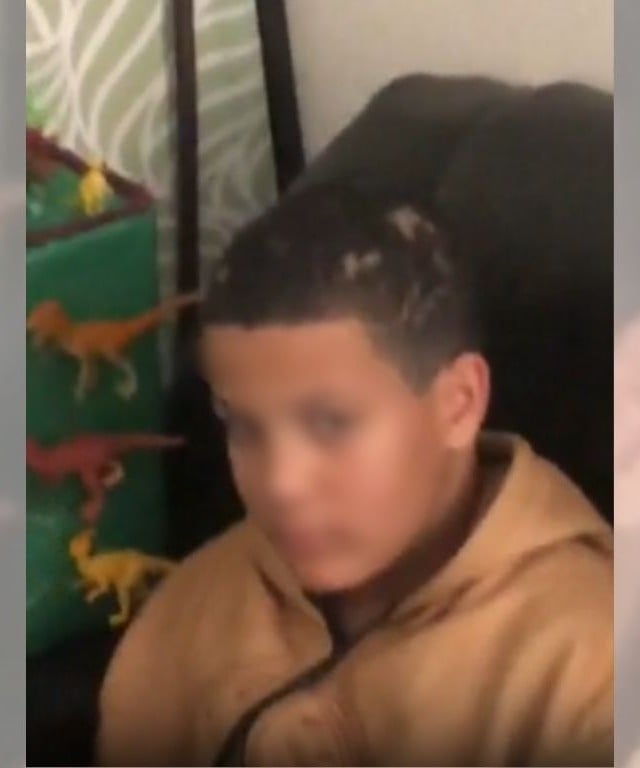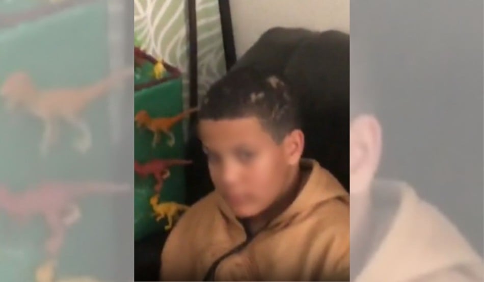 Após o corte, a família teve que raspar o cabelo do menino, que estava com vários buracos. Agora com a cabeça raspada, o garoto não quer mais ir à escola.
