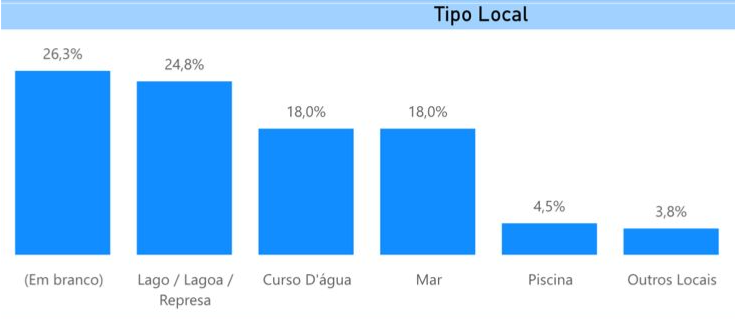 Em 2024, o cenário preocupante também se repetiu nos ambientes de água doce: 35,5% dos afogamentos ocorreram em cursos d’água, enquanto 31% foram registrados ambientes como lagos, lagoas e represas.