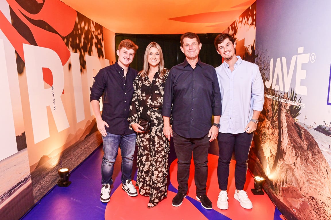 Javé Construtora recebeu convidados para apresentar o Moa Praia de Iriri – A Javé Construtora lançou o primeiro empreendimento no litoral do sul capixaba, o Moa Praia de Iriri, localizado no balneário de Iriri, no município de Anchieta, próximo às praias dos Namorados, Costa Azul e Areia Preta, além de restaurantes. O novo empreendimento residencial de alto padrão conta com apartamentos studio, um quarto e dois quartos de 28m² a 89m²; e lotes de 450 m² a 1.700 m². O projeto apresenta uma estética praiana, inspirado na leveza de viver perto do mar. Suas áreas comuns seguem o conceito de casa de férias e lifestyle de resort, com ambientes integrados, ampla área de lazer e espaços pensados para convivência, bem-estar e experiências ao ar livre. Na foto, a família com Junior, José Luiz Nunes presidente da Javé, Andressa Nunes e Davi.