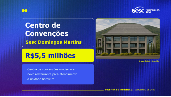 Sesc-ES: um legado de expansão, acesso e futuro para o Espírito Santo – O Espírito Santo vive um período de expansão, e o Sesc caminha ao seu lado. Com o maior ciclo de investimentos de sua história, o Sesc Espírito Santo amplia estruturas, renova unidades e expande serviços que transformam o cotidiano de milhares de trabalhadores do comércio de bens, serviços e turismo e suas famílias. Até 2028, mais de R$ 205 milhões serão aplicados em modernização, inovação e ampliação da rede de atendimento, dentro de um movimento integrado do Sistema Fecomércio-ES – Sesc e Senac, que totaliza mais de R$ 402 milhões em investimentos. “Nosso propósito é garantir que o Sesc siga sendo um instrumento de transformação social, ampliando o acesso a serviços e oportunidades em todo o Estado”, afirma Idalberto Moro, presidente do Sistema Fecomércio-ES – Sesc e Senac. “Investimos não apenas em obras, mas em pessoas, em qualidade de vida e no futuro do Espírito Santo.”