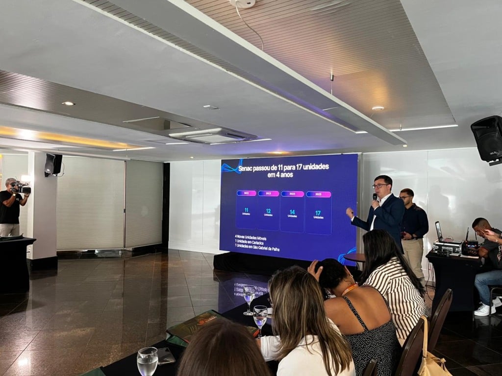 A atuação e a expansão do Senac-ES – Atualmente, o Senac-ES conta com 11 Unidades de Educação Profissional nos municípios de Vitória, Serra, Cariacica, Vila Velha, Linhares, São Mateus, Colatina, Santa Teresa, São Gabriel da Palha, Venda Nova do Imigrante e Cachoeiro de Itapemirim. Conta, também, com uma unidade administrativa, Unidades Móveis de Educação Profissional (Smart Lab, Gastronomia, Beleza e Saúde), com atuação em 78 municípios capixabas. Entre 2022 e 2025, os investimentos permitiram ampliar de 09 para 17 unidades no Estado, com projeção de chegar a 20 unidades até 2026. Novas Unidades de Educação Profissional serão abertas em Cariacica e Carapina, Reformas e melhorias estão sendo planejadas nas unidades de Colatina, Vila Velha, Hotel Senac Ilha do Boi (área de lazer e Píer), implantação de cineteatros em Santa Teresa e Venda Nova do Imigrante), cozinhas didáticas e implantação de ambiente para ensino híbrido.