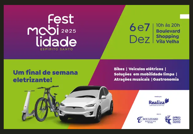 Com boom de bikes e carros elétricos, ES ganha festival inédito sobre mobilidade limpa – O boom das bikes e carros elétricos vai ganhar palco no Espírito Santo. Nos dias 6 e 7 de dezembro de 2025, o Boulevard Shopping, em Vila Velha, será o cenário da primeira edição do Fest Mobilidade, evento que propõe estimular essa forma de circular pela cidade – e que veio para ficar. Só no Estado, já se estima que cerca de 10 mil bicicletas elétricas estejam em circulação — sinal de que a mobilidade limpa deixou de ser promessa e virou realidade nas ruas. Com o mote “movimento pela mobilidade limpa”, o festival reúne inovação, sustentabilidade e qualidade de vida em um único espaço. Durante o fim de semana, mais de 20 expositores vão apresentar soluções de transporte limpo, como bicicletas e patinetes elétricos, veículos híbridos e elétricos, acessórios e novas tecnologias voltadas à mobilidade urbana sustentável.