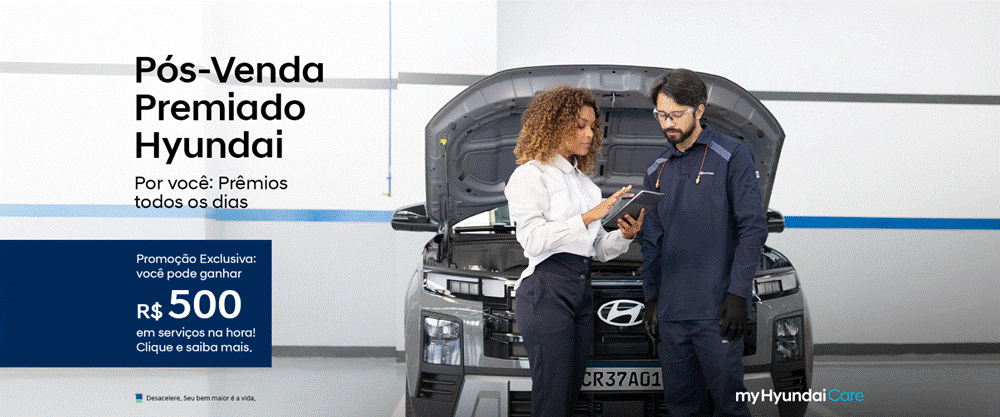 Hyundai lança campanha com prêmios diários de R$ 500 em serviços, peças e acessórios – A Hyundai Motor Brasil lança sua nova campanha “Pós-Venda Premiado Hyundai. Por Você: Prêmios todos os dias”. A ação oferece vouchers diários de R$ 500 para clientes da rede de concessionárias Hyundai, válidos para uso em serviços, peças e acessórios nos veículos da marca. Para participar, basta se cadastrar na promoção, e assim já garantir uma chance, ou visitar qualquer concessionária Hyundai no Brasil, gastar ao menos R$ 250 em serviços, peças, acessórios ou produtos de pós-venda e acumular novas oportunidades de ganhar. As premiações acontecem pelo site da promoção, através do Game Box Premiado Hyundai, no qual o participante escolhe um dos três boxes apresentados e pode levar o prêmio na hora.