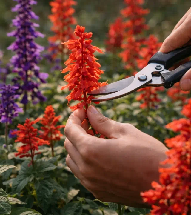 O que quase ninguém percebe é que a Sálvia-ornamental não perde a força por cansaço natural. Na maioria das vezes, ela para de florir porque ninguém fez as podas certas — ou porque elas foram feitas no momento errado.