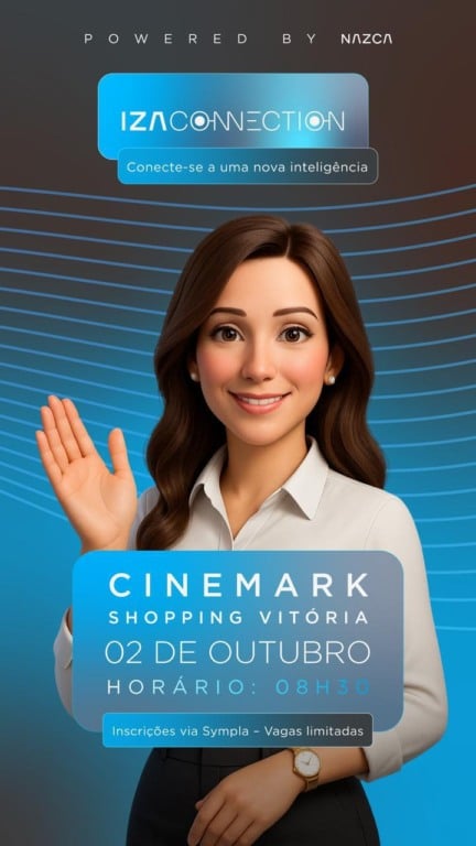 Nazca lança Iza Connection hoje, dia 2, no Cinemark Vitória – Nesta quinta-feira, dia 02 de outubro, a partir das 8h30, no Cinemark Vitória, a Nazca promove o lançamento da Iza, sua própria Inteligência Artificial exclusiva para corretores de imóveis. O evento terá a presença de Fábio Neto, sócio da StartSe, referência nacional em inteligência artificial e transformação de negócios. Executivo e palestrante reconhecido, Fábio atua há anos ajudando empresas a explorarem o potencial da IA para crescer e se posicionar em um mercado cada vez mais competitivo. “O grande diferencial é que a ferramenta foi desenvolvida pela incorporadora, totalmente codificada e personalizada para atender às necessidades dos profissionais do setor, fortalecendo ainda mais a conexão entre tecnologia e mercado imobiliário”, conta a gerente de marketing da Nazca, Viviane Albani.