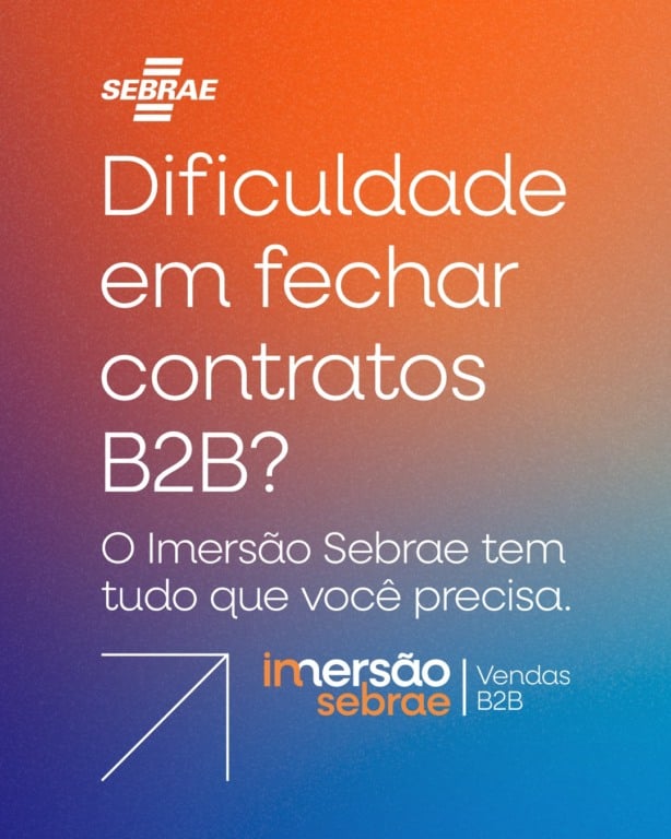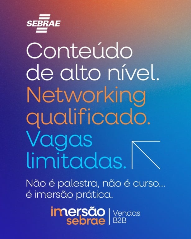 O Sebrae/ES apresenta ao mercado capixaba um novo produto em sua carteira de soluções: o Imersão Sebrae, iniciativa que inaugura um formato de qualificação moderno, dinâmico e conectado às necessidades atuais dos empreendedores. A primeira edição, marcada para 29 de outubro em Vitória, terá como tema Vendas B2B e reunirá cerca de 150 empresários em um dia inteiro de conteúdo de alto nível, dinâmicas práticas e oportunidades de networking qualificado. A proposta é oferecer, em um único dia, frameworks aplicáveis, insights estratégicos e conexões reais para quem atua no mercado de vendas entre empresas.