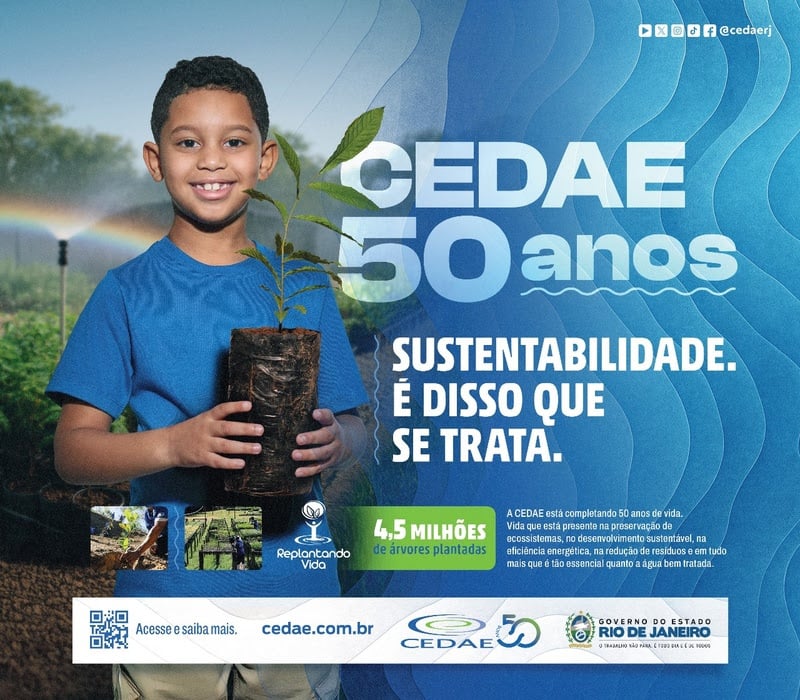 A campanha publicitária valoriza a história e a resiliência da Cedae nestes 50 anos – O secretário de Estado de Comunicação e Publicidade, Igor Marques, destaca que a campanha publicitária valoriza a história e a resiliência da Cedae nestes 50 anos. “É uma oportunidade de prestarmos conta à população do Rio de Janeiro de tudo o que está sendo feito pela Companhia”, afirma, ao lembrar que “nessas cinco décadas, a Cedae venceu os desafios da modernização dentro do setor público e chega à maturidade saudável financeiramente, pronta para o futuro”. Composta por filmes, spots de rádio, mídias digitais, DOOH (Digital Out Of Home) e anúncios para mídia impressa, a campanha será veiculada em todo o estado do Rio de Janeiro.