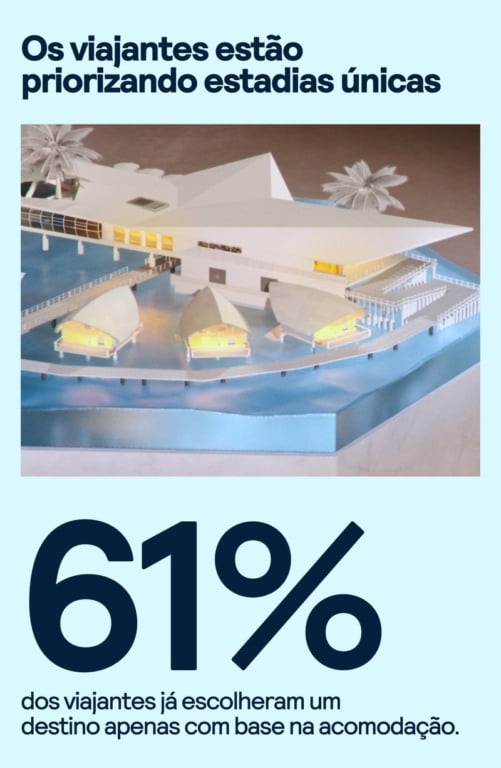 Destination check-in (O destino é o check-in): Para muitos viajantes, o hotel ou a pousada deixaram de ser apenas um lugar para passar a noite e se tornaram o protagonista da viagem. Os números confirmam essa transformação: 61% dos brasileiros já escolheram um destino principalmente por causa de um local onde queriam se hospedar. A tendência é ainda mais forte entre os mais jovens — 64% da Geração Z e 66% dos Millennials, em comparação com 38% dos Boomers. “Estamos vendo as acomodações saírem do pano de fundo e assumirem o centro do palco, tornando-se experiências por si só”, afirma a especialista em voos e viagens do Skyscanner.