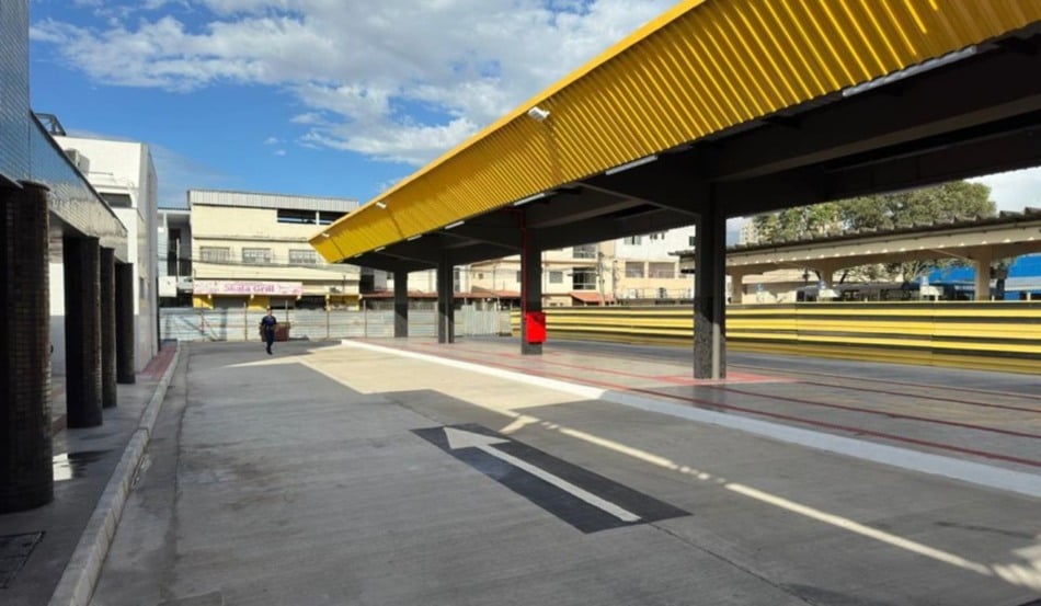 Na primeira etapa de obras, a plataforma 1 recebeu nova cobertura metálica termoacústica, reforma estrutural, piso podotátil, pintura geral e substituição completa da rede elétrica, com novas luminárias.