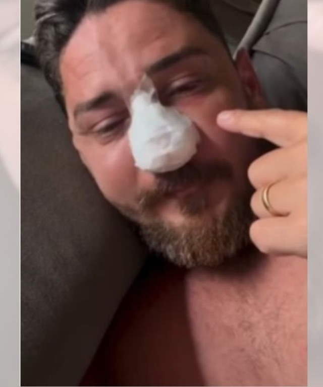 Johnny Andrade, um dos homens agredidos por comerciantes na praia de Porto de Galinhas, em Pernambuco, precisou passar por cirurgia para corrigir quatro fraturas identificadas no rosto.