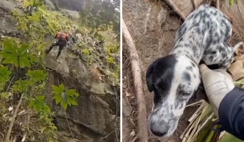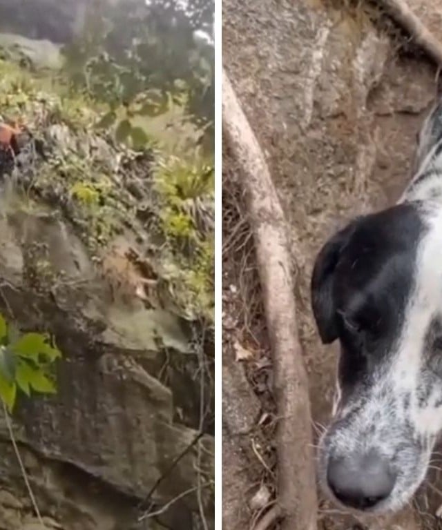 Um cachorro foi resgatado por uma equipe do Corpo de Bombeiros após ficar preso em um penhasco, a cerca de 10 metros de altura, no município de Irupi, no Caparaó do Espírito Santo.