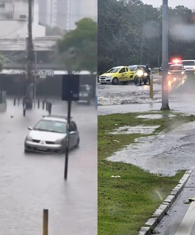 Em imagens enviadas para o Folha Vitória, é possível perceber que em Vitória há alagamentos que complicou a vida dos motoristas que passavam pela Avenida Norte e Sul.