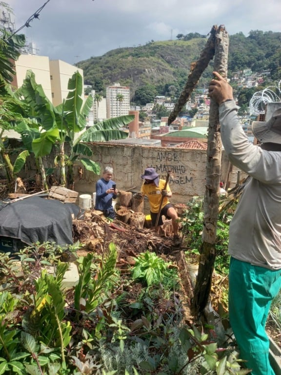 Lá encontrei artesãos, engenheiros de alimentos, ecologistas, arte educadores e outros profissionais, moradores da região e de outros bairros, exercendo o velho ofício de “arar” a terra. Mensalmente, eles fazem um encontro-mutirão para plantar, fazer compostagem, colher hortaliças e frutas, conversar, tomar café, enfim, viver e retomar essa prática que fundou a nossa sociedade e confirmar vínculos.