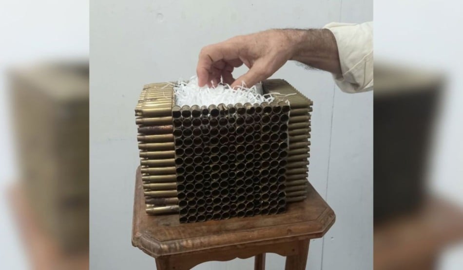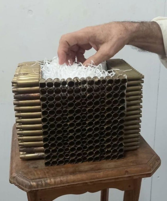 BALEIRO. Este é o titulo de um dos trabalhos do artista Carlos Eduardo Borges apresentado no encontro Arte+ (Atelier FA. setembro 2025). Trata-se de uma pequena escultura participativa, feita com cartuchos de pistolas e fuzis recolhidas após tiroteios na comunidade Vigário Geral, Rio de Janeiro.