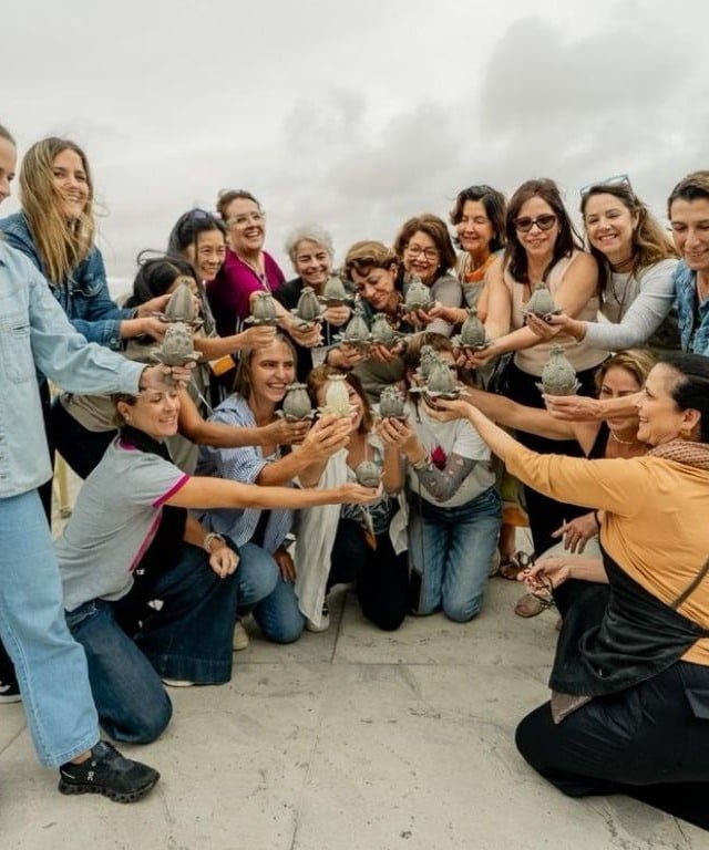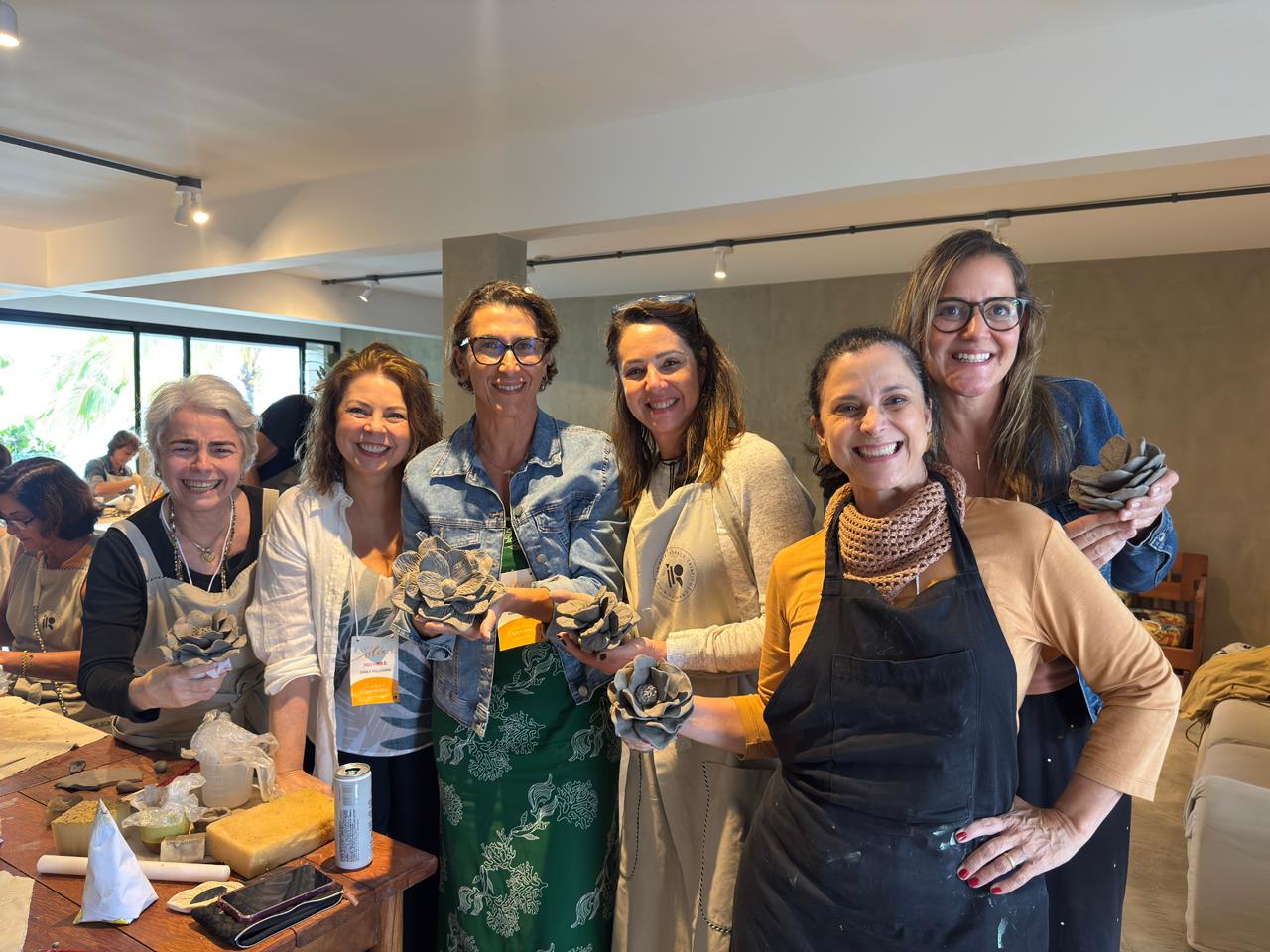 A artista convidada Darly Pelegrino, referência no universo da técnica “paperclay”, guiou olhares e mãos por caminhos de leveza e força, tão contraditórios e belos quanto a própria alma feminina. Em cada peça moldada, havia um pouco de silêncio, coragem e amor. Nenhuma igual à outra. Todas únicas, verdadeiras, marcadas pela expressão de quem cria com o coração.