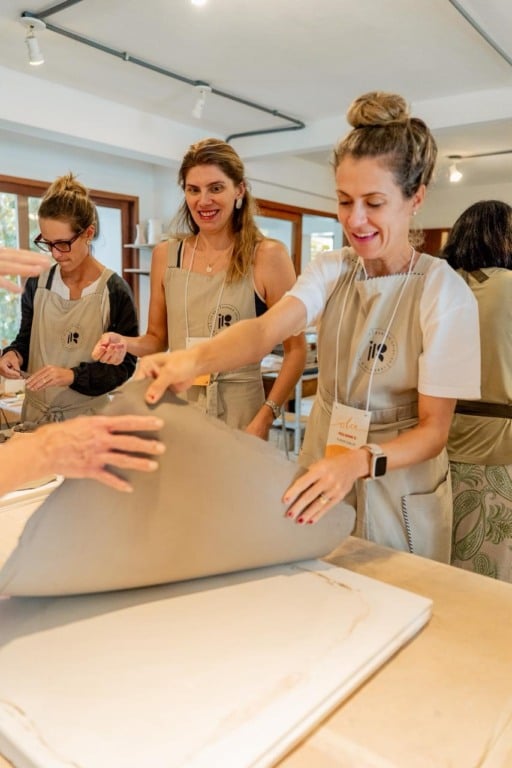 Foi nesse espírito que o Cerâmica Experience ganhou forma: um encontro tecido com afeto pelas ceramistas Isa Reis e Aline Cypriano, no cenário acolhedor do Hotel Pontal de Ubu, em Anchieta.