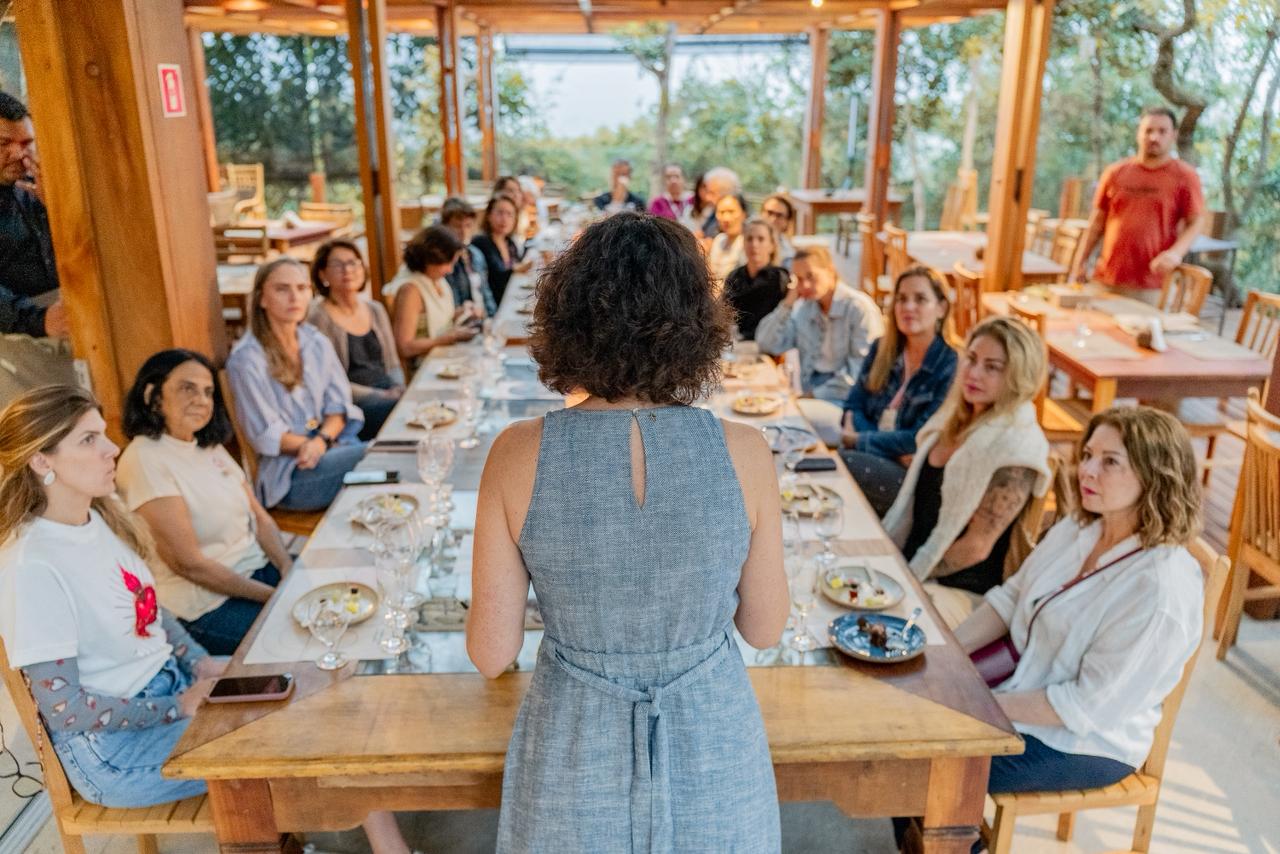 Entre uma queima e outra, a tarde se encheu de aromas e conversas. Letícia Paiva conduziu uma experiência sensorial com vinhos, convidando cada participante a degustar o instante, a perceber o tempo das coisas, a reconhecer o valor do agora.