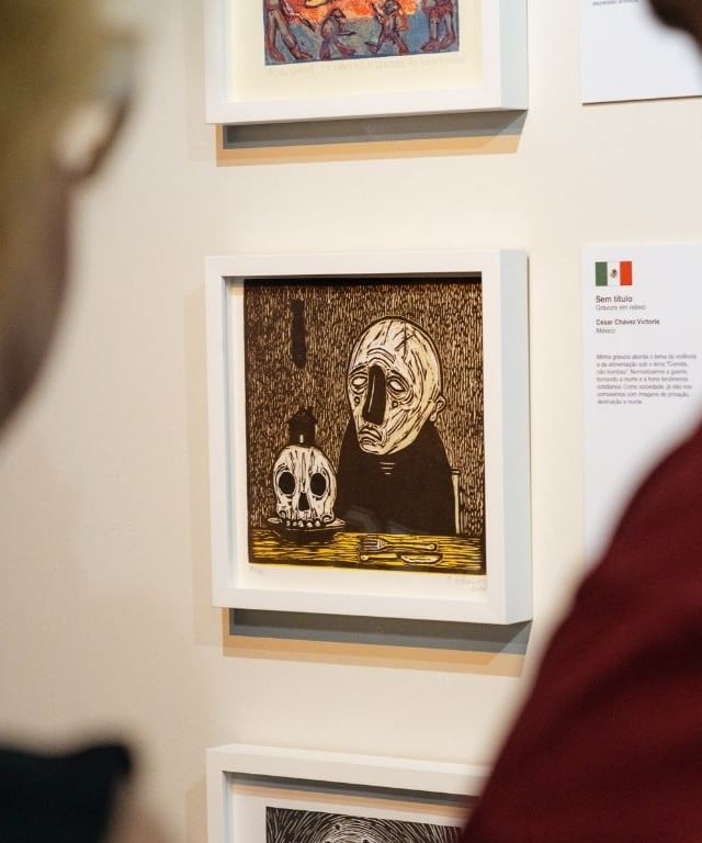 A exposição reúne 36 gravuras de artistas de nove países, como Brasil, Índia, México e Estados Unidos, abordando temas como justiça social, direitos humanos e transformação cultural. Além das obras, o público pode conferir matrizes originais de xilogravura, oferecendo uma experiência sensorial.