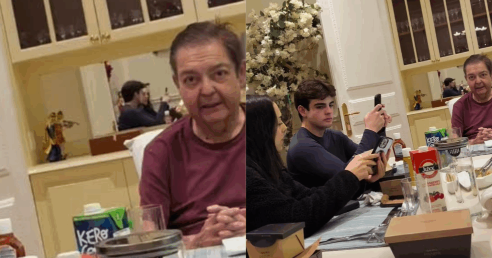 O registro foi feito durante um jantar em família com os irmãos Lara e Rodrigo. No vídeo, João fazia uma brincadeira sobre o caçula não reconhecer a fantasia usada por Lara em uma festa de Halloween, mas o que realmente chamou atenção foi a rápida aparição de Fausto Silva ao fundo, sentado à mesa.