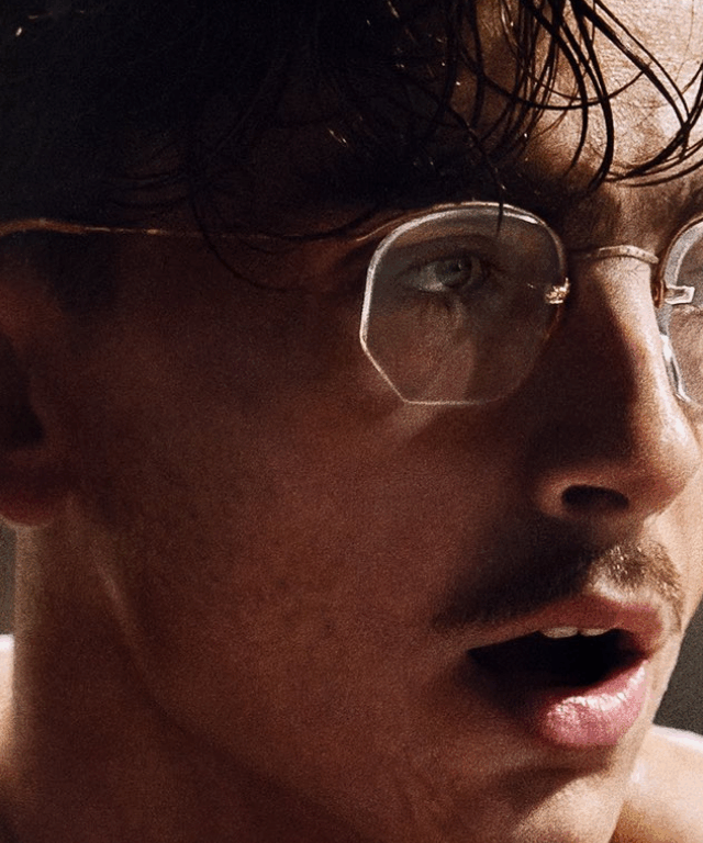Timothée Chalamet entrega aqui, muito provavelmente, a performance mais intensa de sua carreira. Magro, desajeitado, monocelhas e óculos grossos, seu protagonista está longe de ser o ideal heroico americano cultivado por décadas no cinema. Ainda assim, há algo de hipnotizante em sua presença.