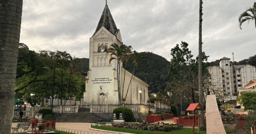 Considerada o mais antigo templo protestante com torre do Brasil e da América Latina, a igreja teve sua construção iniciada em 1866, com a torre inaugurada em 1887. O edifício é um marco da presença alemã no Estado e é tombado como patrimônio histórico.