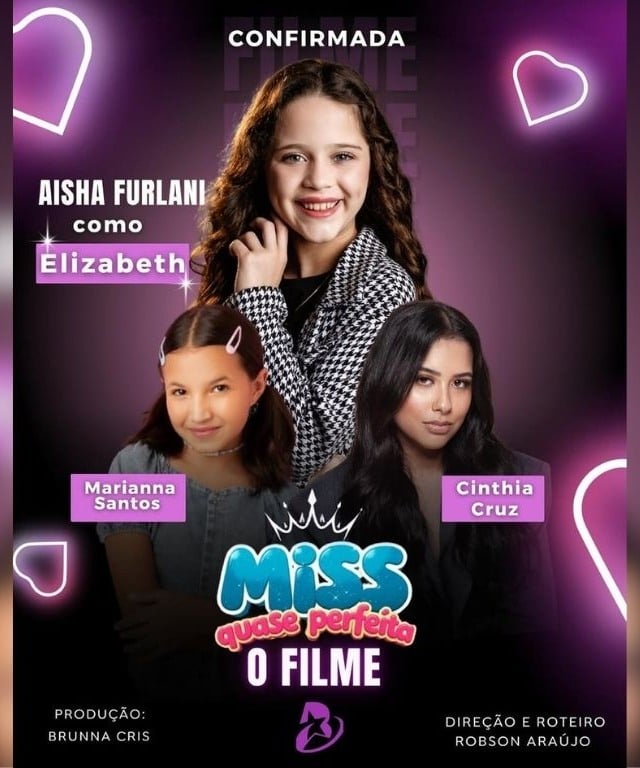 A jovem capixaba Aisha Furlani, de 12 anos, está prestes a viver um momento especial na carreira. A influenciadora mirim vai estrelar a comédia “Miss Quase Perfeita”, produzida por Brunna Cris, que será lançada nas plataformas Prime Video, Box Brazil Play e Claro TV+.