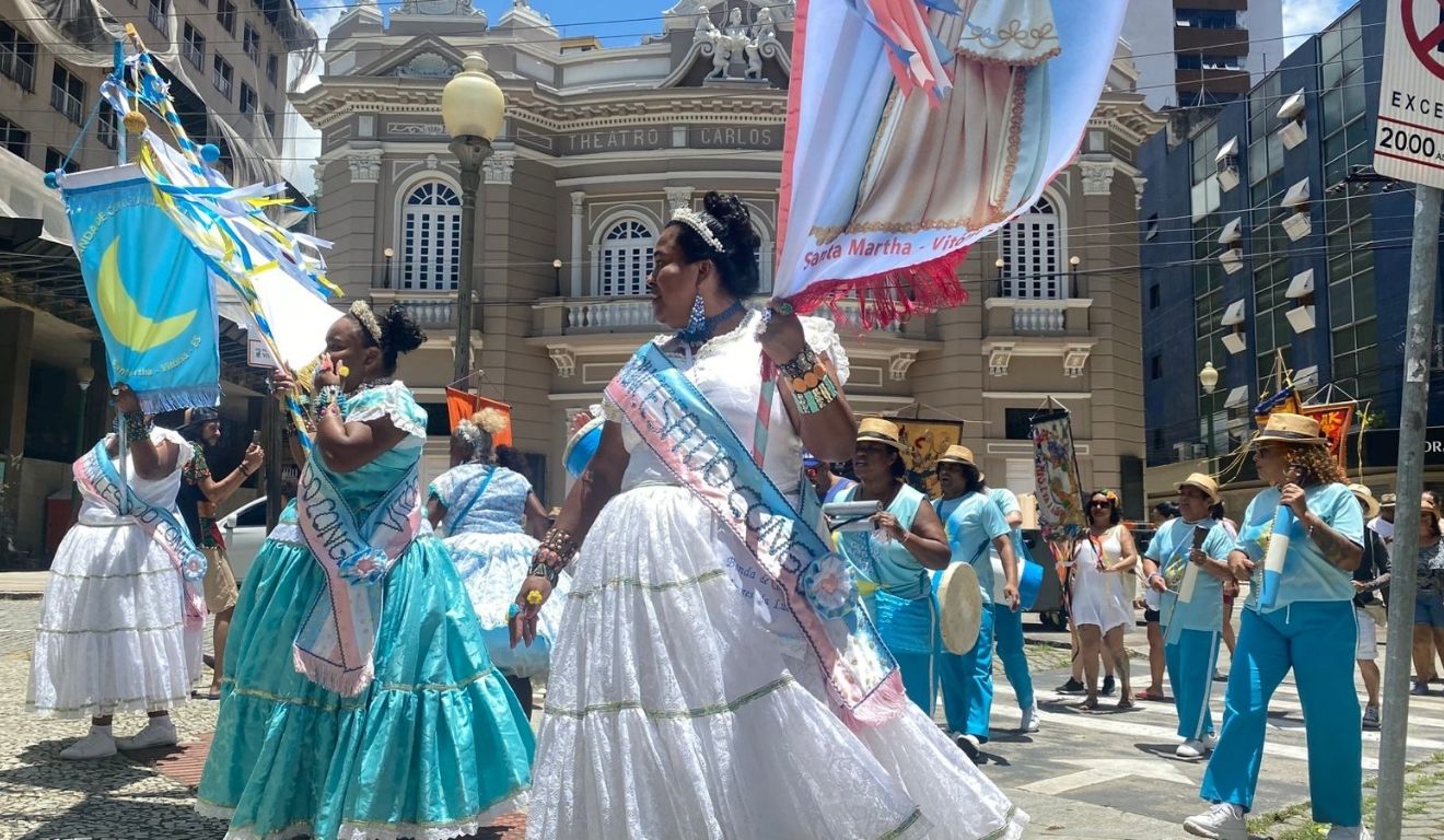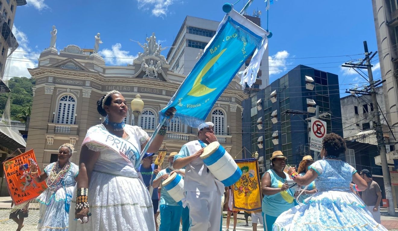Ela também ressaltou que o encontro deste domingo reuniu blocos, estandartes e bandas de Congo, articulados pela Associação de Moradores do Centro de Vitória (Amacentro).